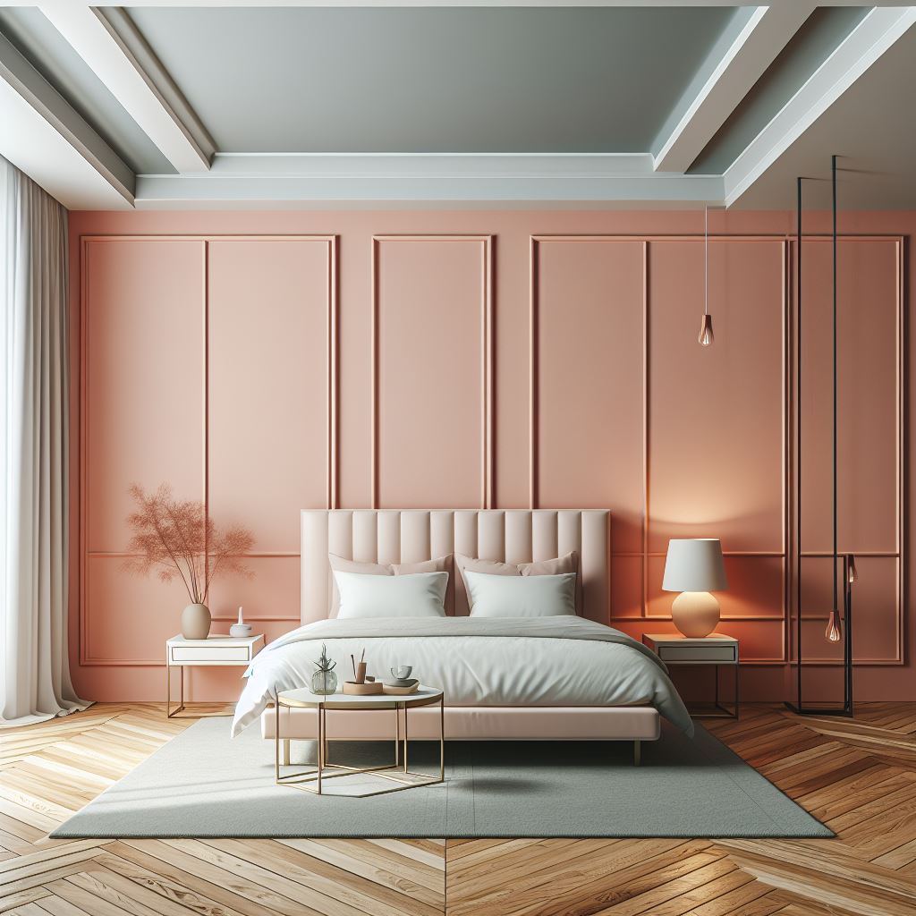 Peach Fuzz 13-1023 в интерьере спальни