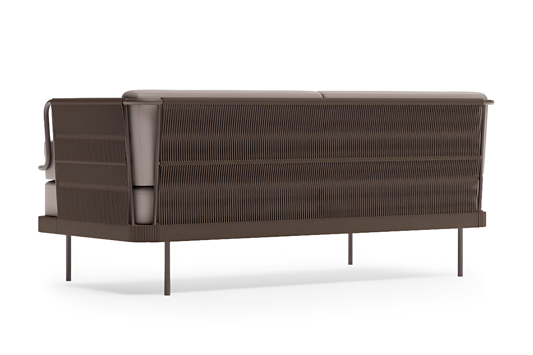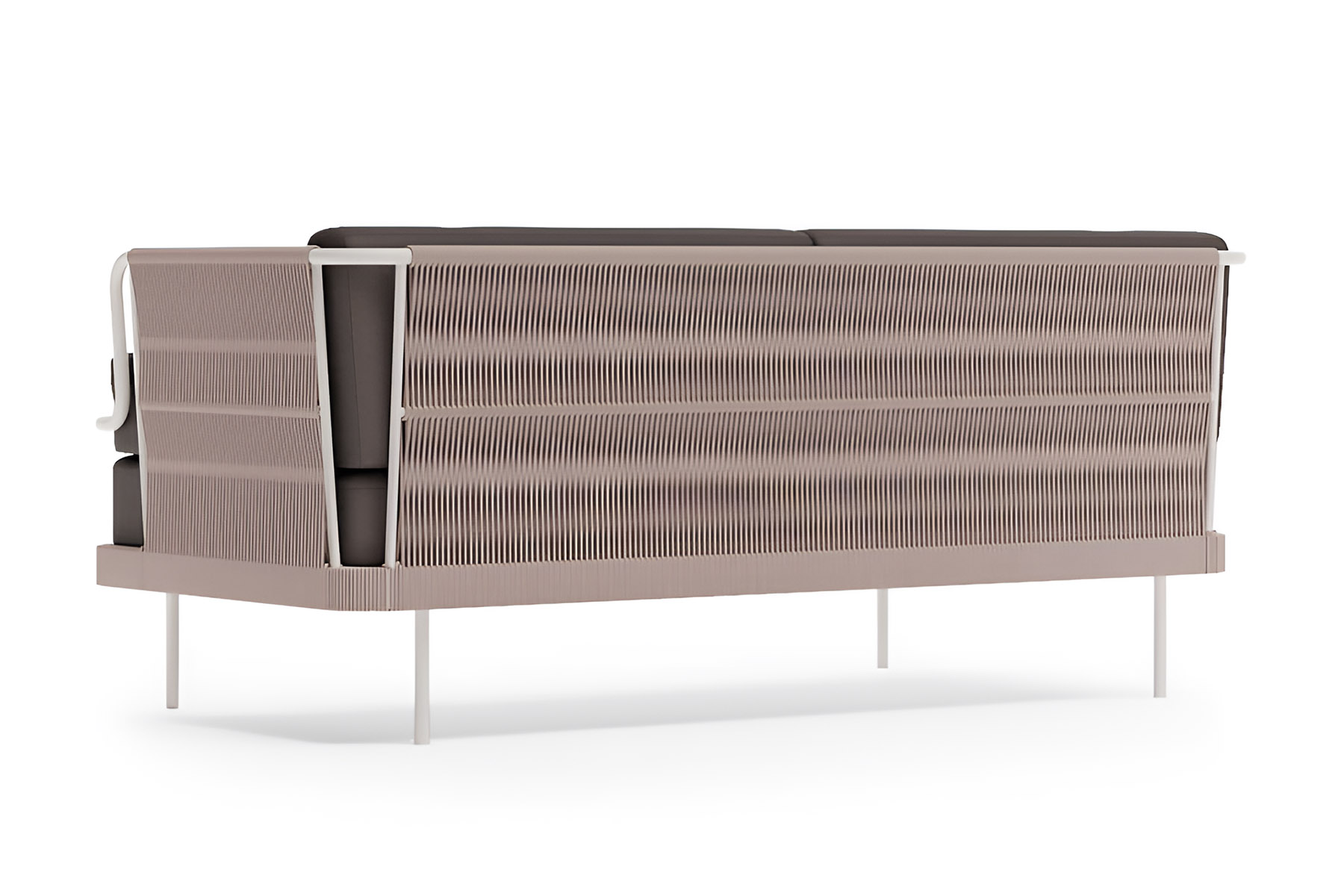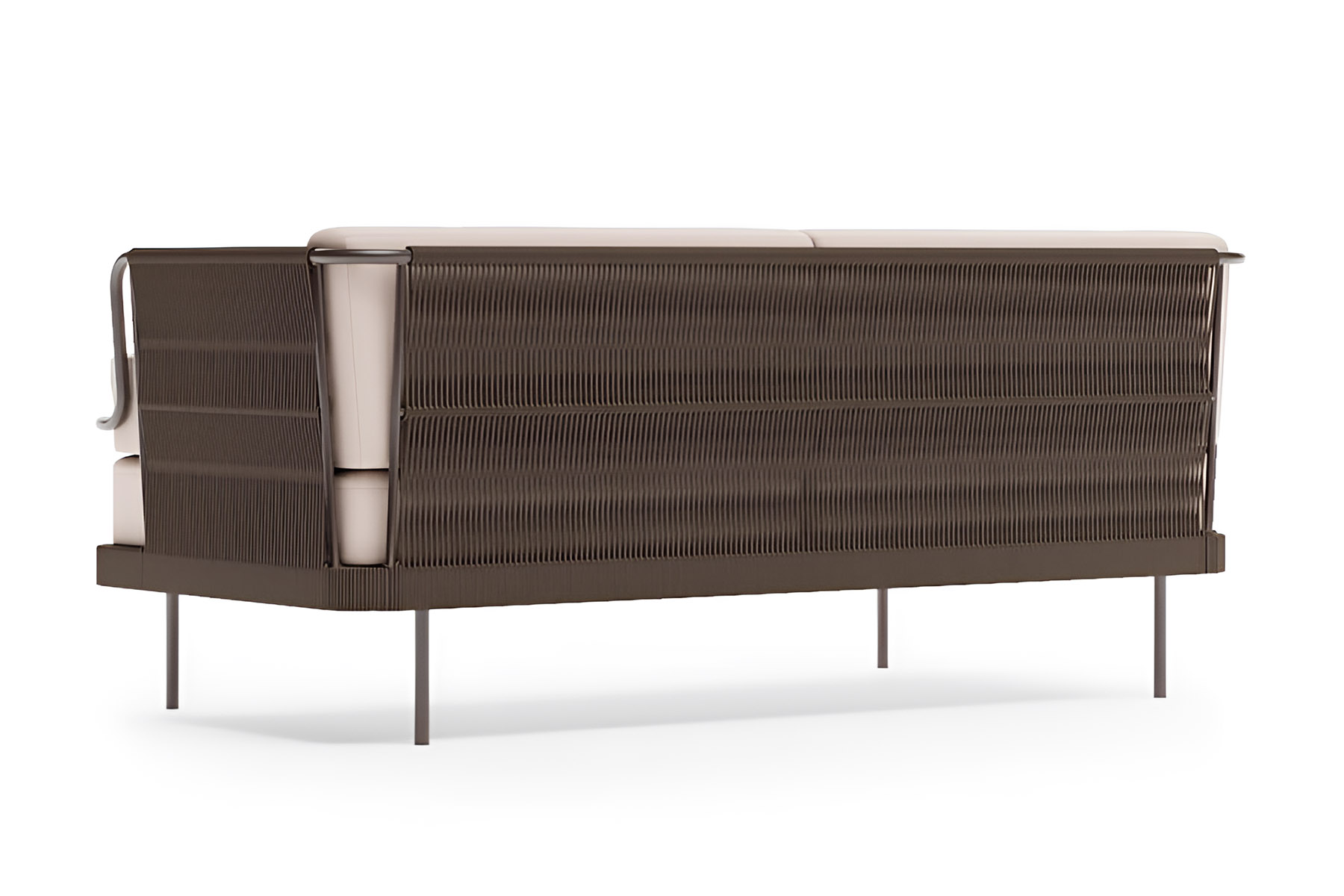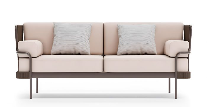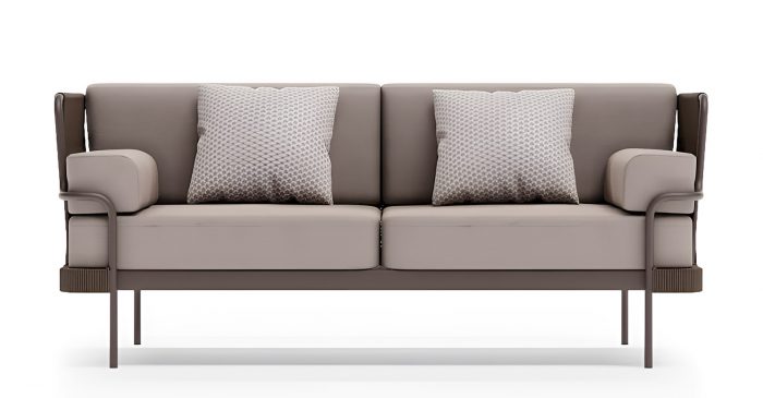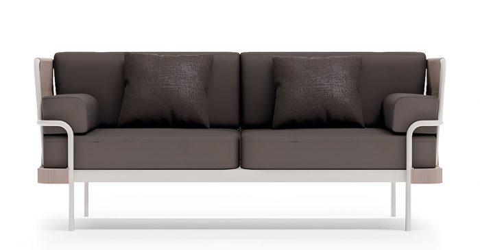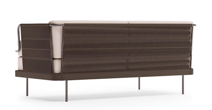 Солидный вес и продуманная конструкция делают этот диван долговечным элементом премиального уличного интерьера.