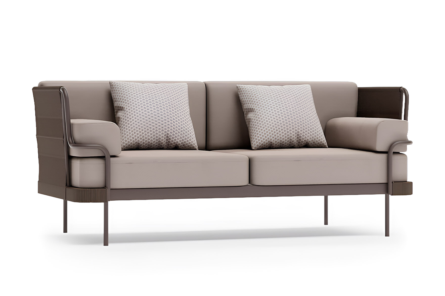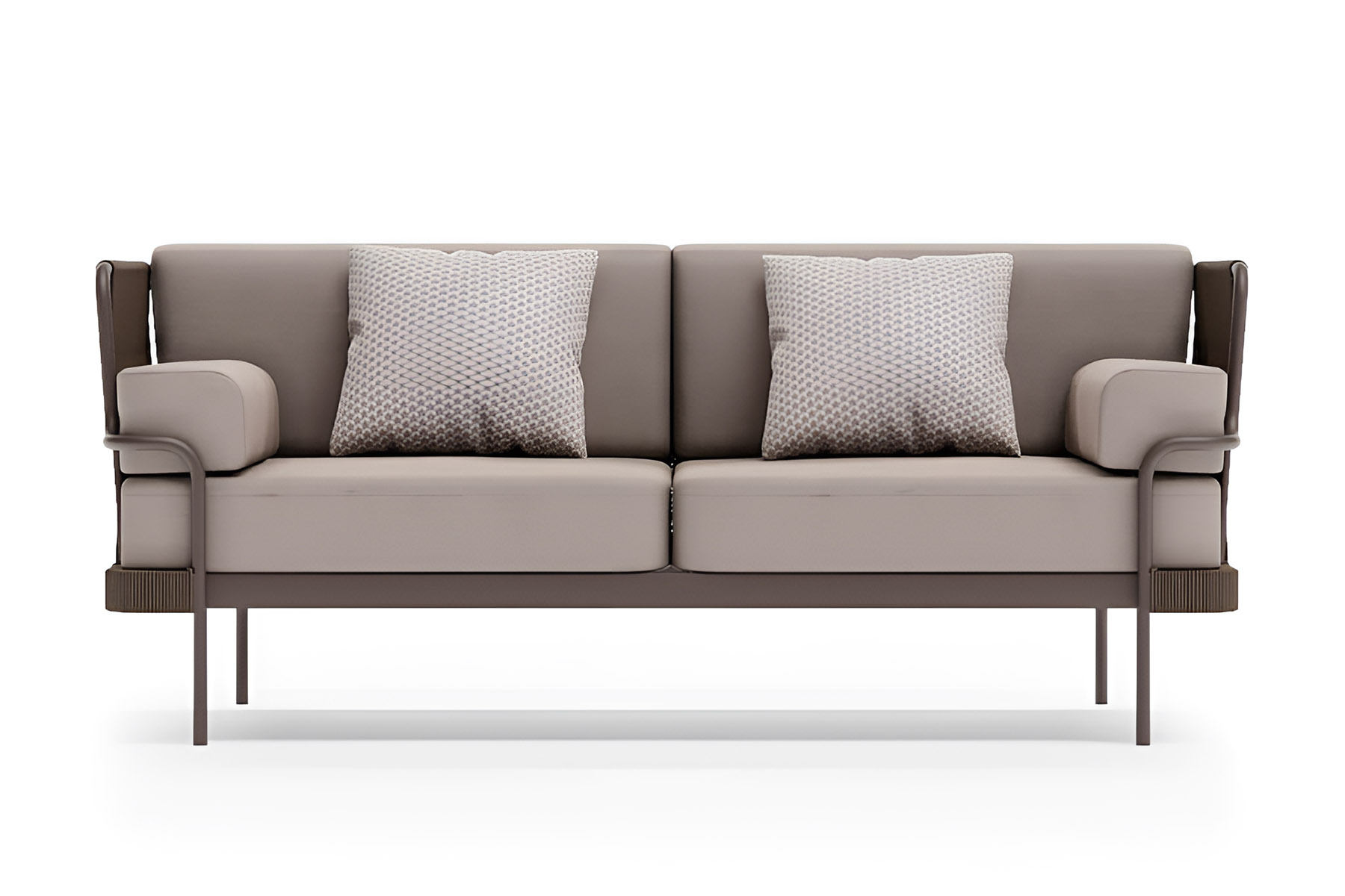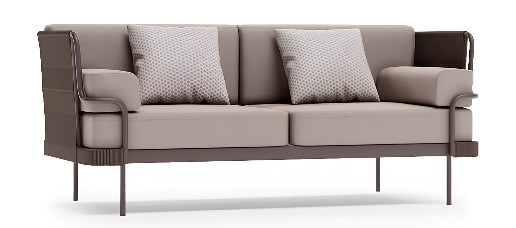 Солидный вес и продуманная конструкция делают этот диван долговечным элементом премиального уличного интерьера.