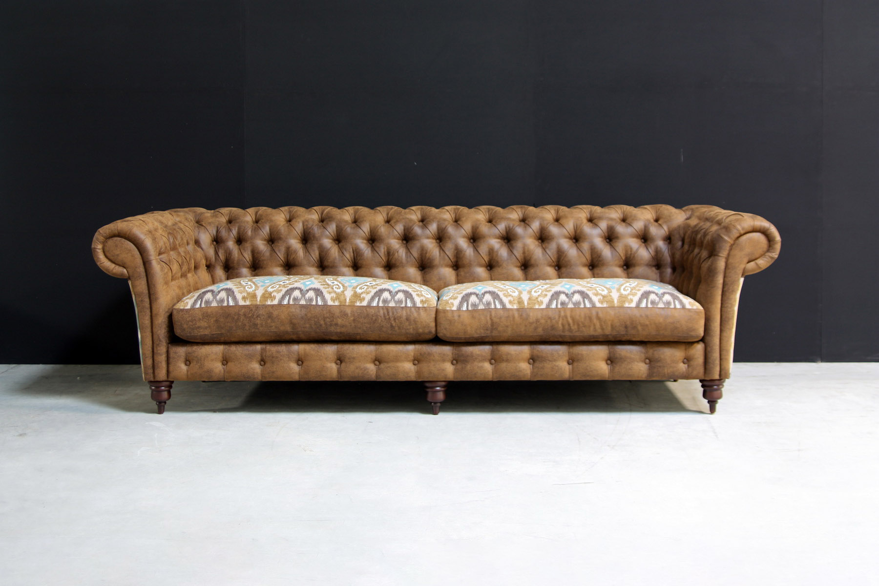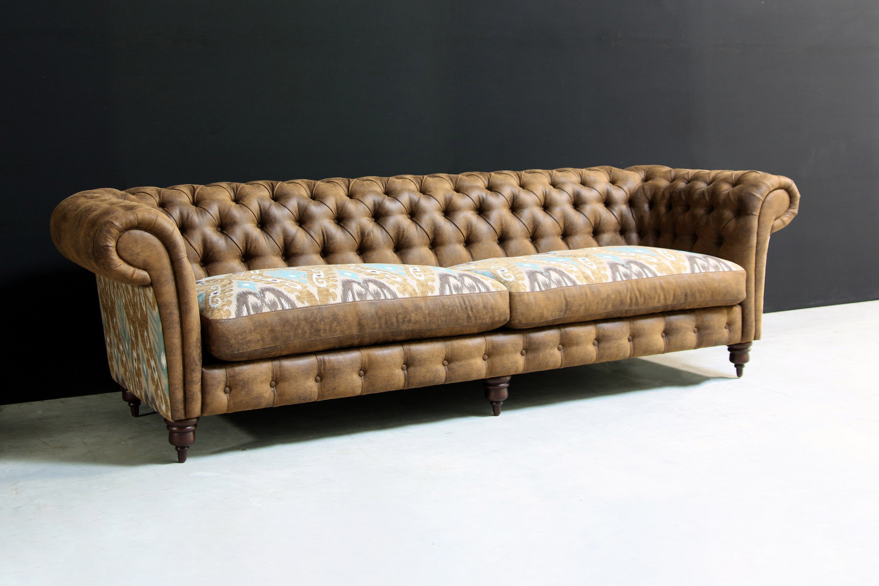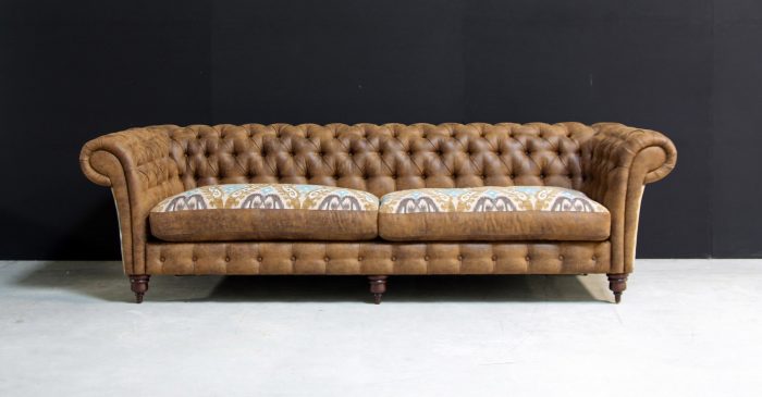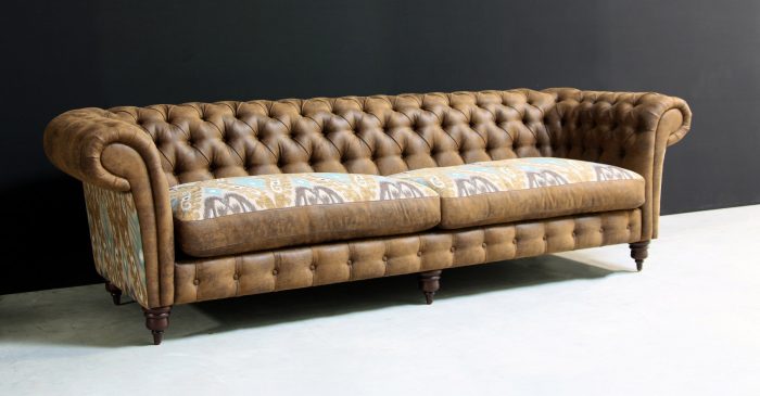 | Особенности: | выполненная с помощью пуговиц-капитоне, подлокотники украшены декоративными гвоздями, декорированная отделка мягкой спинки |