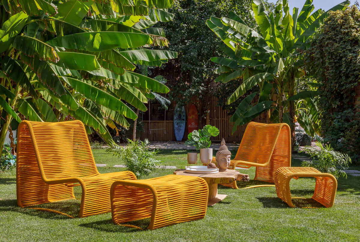 Выберите понравившийся цвет, добавьте пуф и кофейный столик – и перед вами стильный комплект премиальной мебели с тропическим шармом.