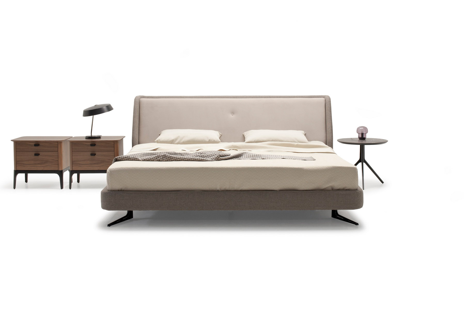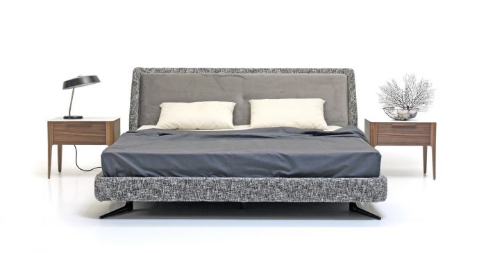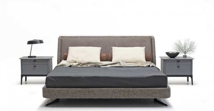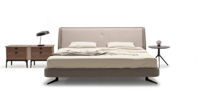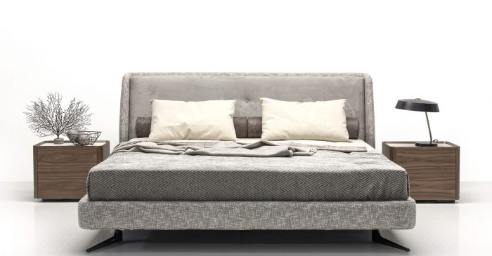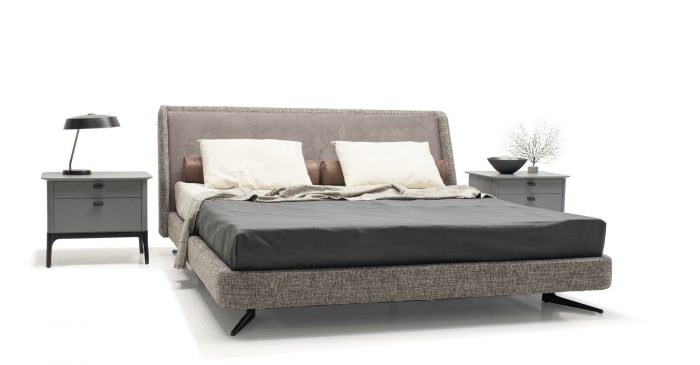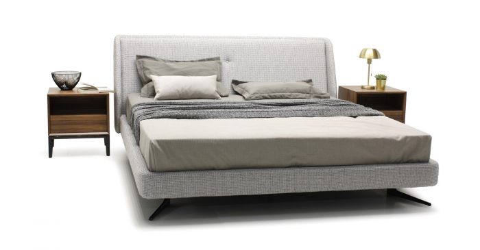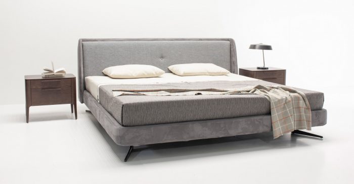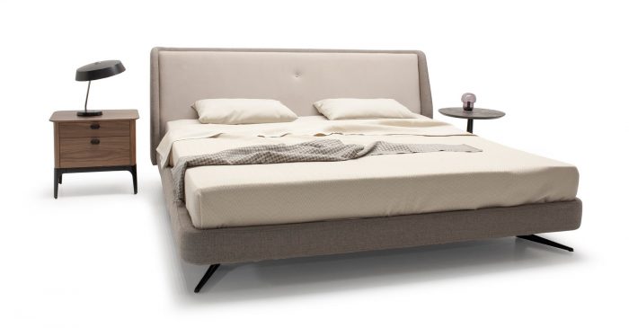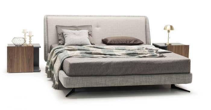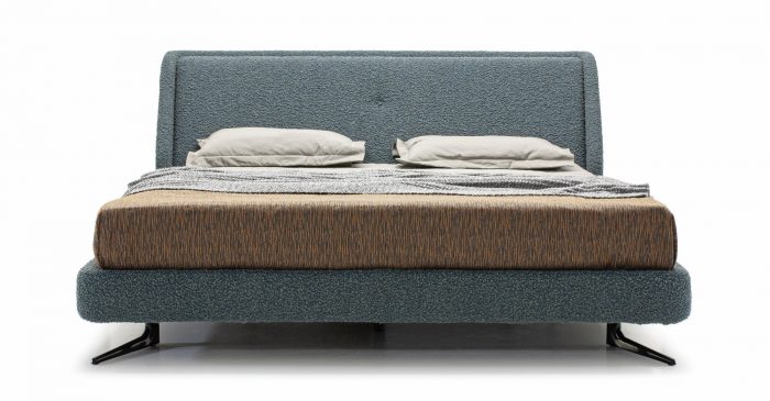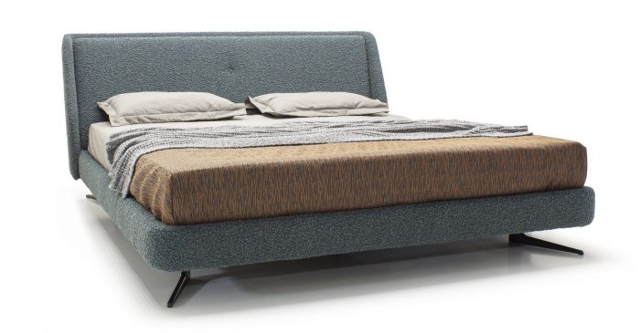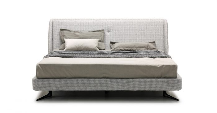 Кровать отлично впишется в современную спальню и не будет перегружать интерьер. Мягкое основание создает ощущение уюта. Металлические итальянские опоры окрашены в черный цвет и спрятаны под основание.