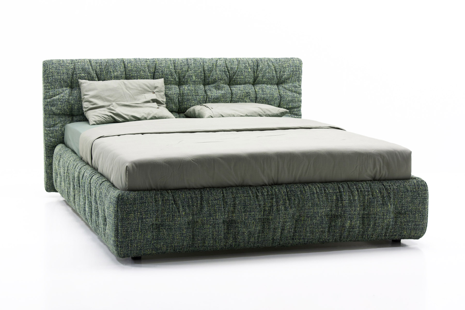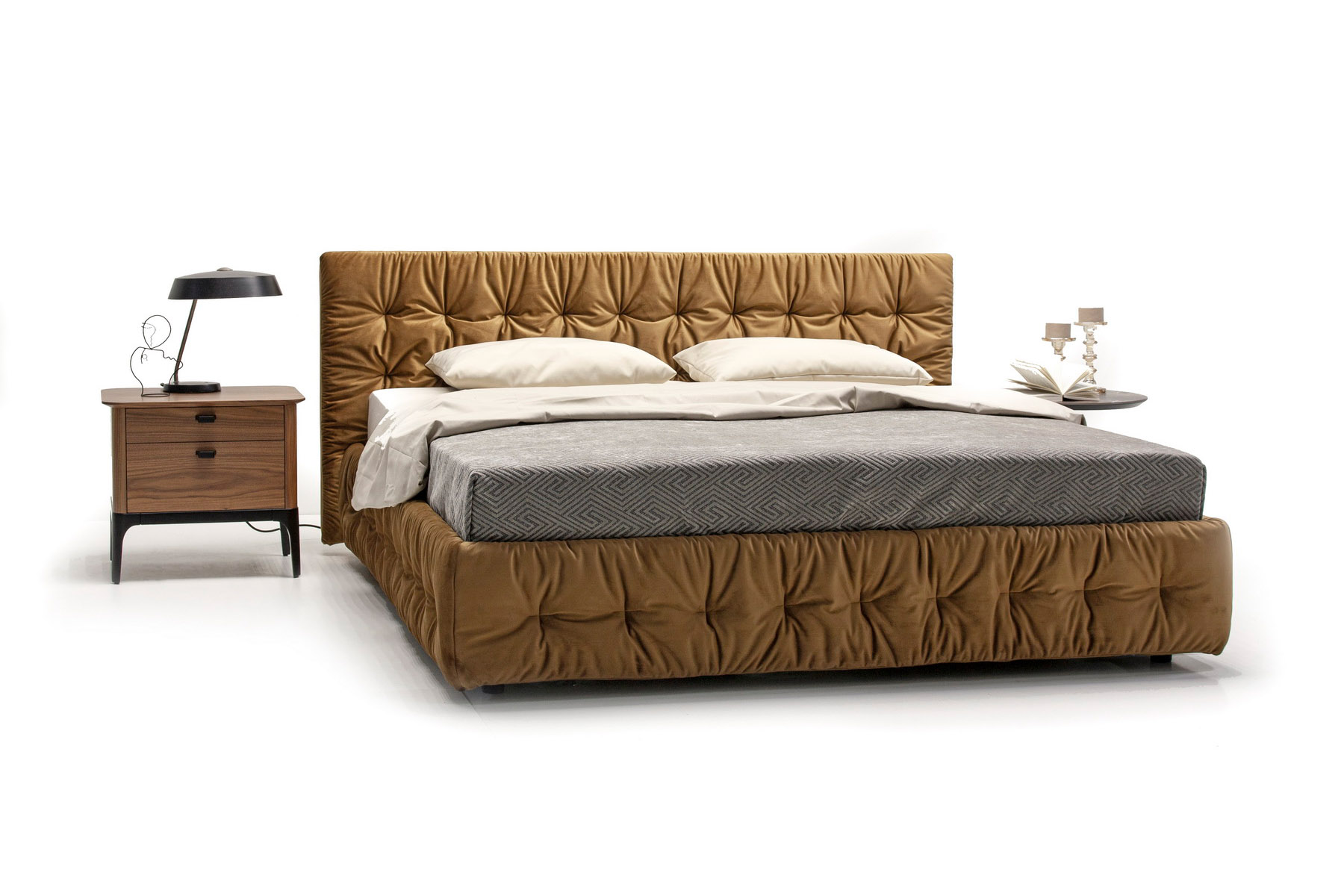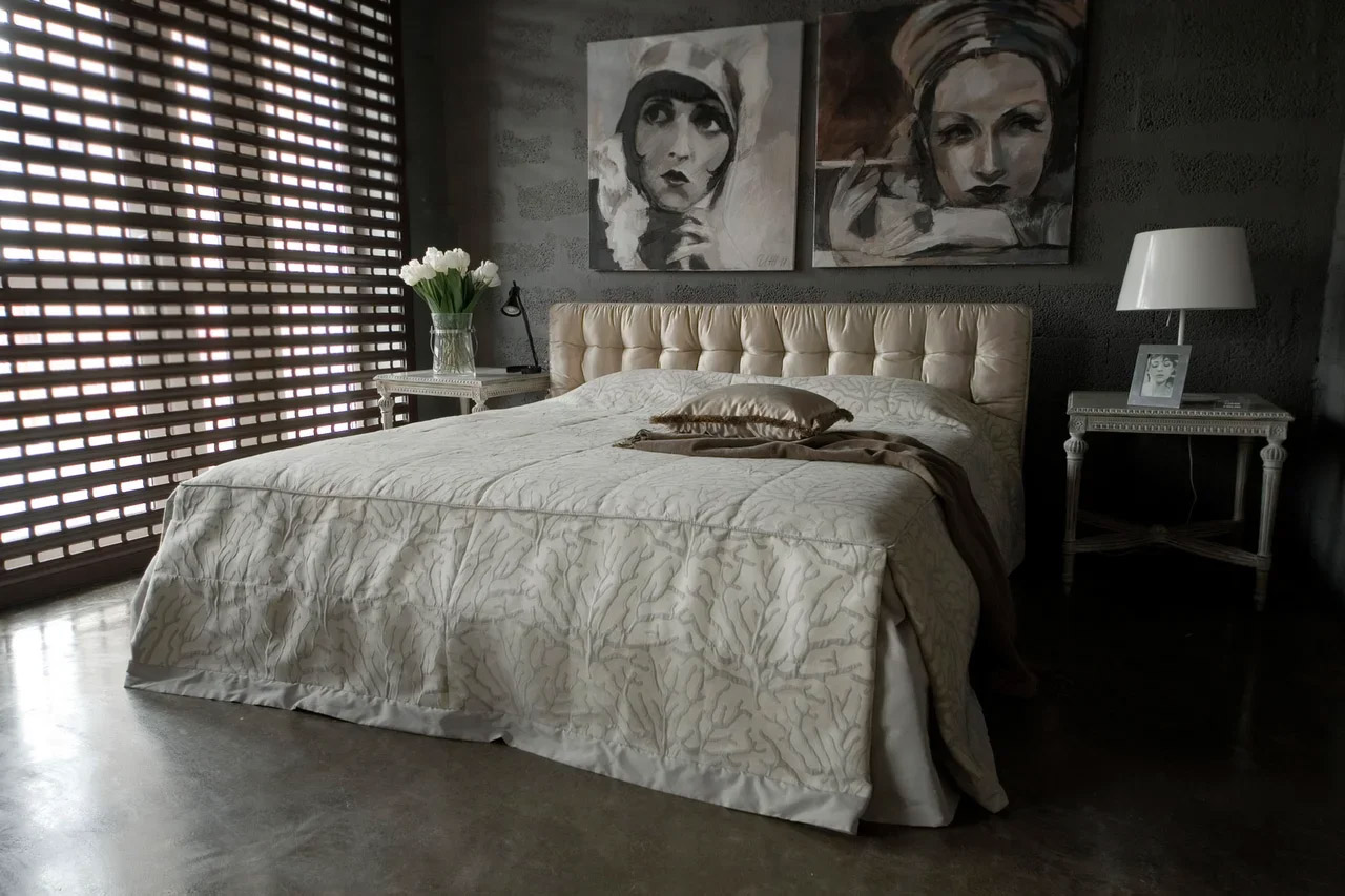 Воздушная и нежная кровать Space добавит нотку стиля в общий облик спальни. Особый эффект придает стяжка по всему периметру кровати, создавая ощущение легкости и уюта. Наряду с эстетическим удовлетворением выступает практичная особенность кровати — эргономичность спального места и наличие ящика для белья. Выгодно впишется в интерьер, оформленный как в современном стиле, так и традиционном классическом.