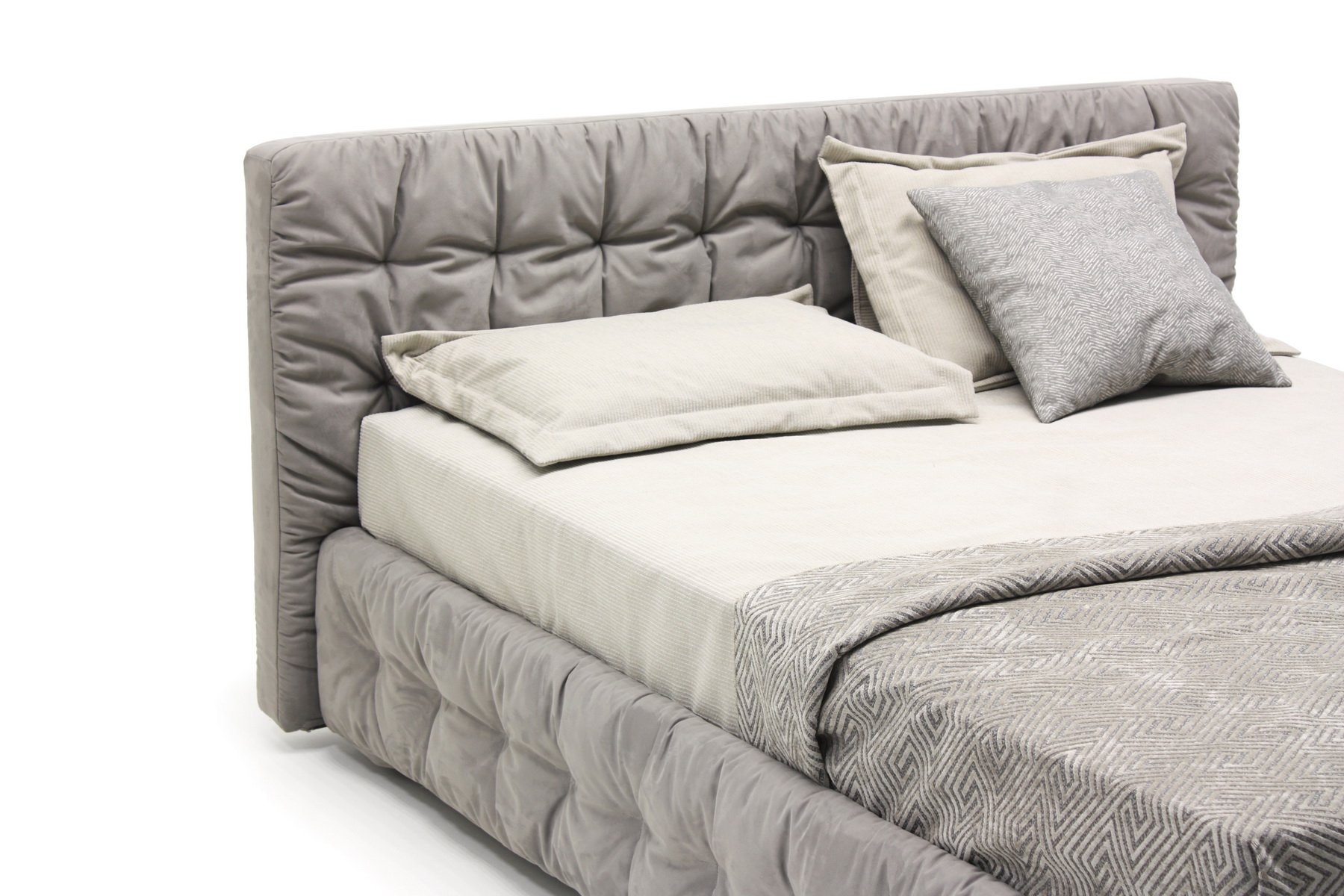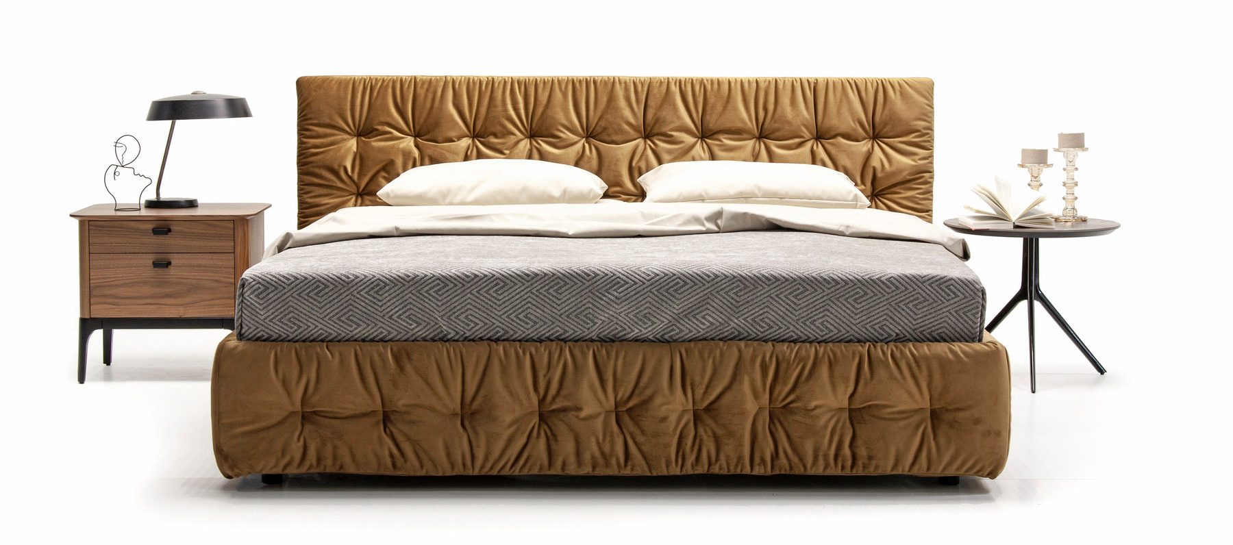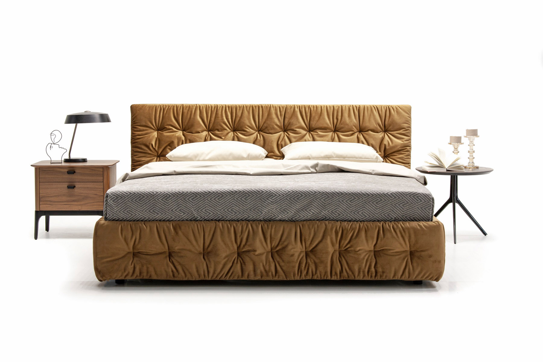 Воздушная и нежная кровать Space добавит нотку стиля в общий облик спальни. Особый эффект придает стяжка по всему периметру кровати, создавая ощущение легкости и уюта. Наряду с эстетическим удовлетворением выступает практичная особенность кровати — эргономичность спального места и наличие ящика для белья. Выгодно впишется в интерьер, оформленный как в современном стиле, так и традиционном классическом.