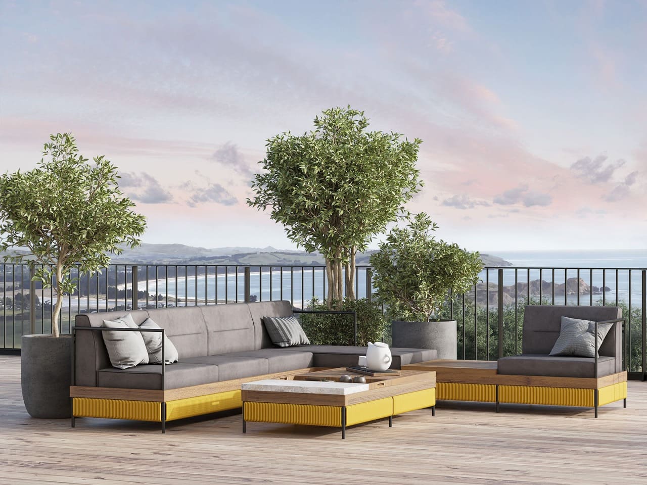 Эта мебель, построенная на контрастах, дарит яркие эмоции в любую погоду благодаря прочной конструкции и всесезонным материалам.