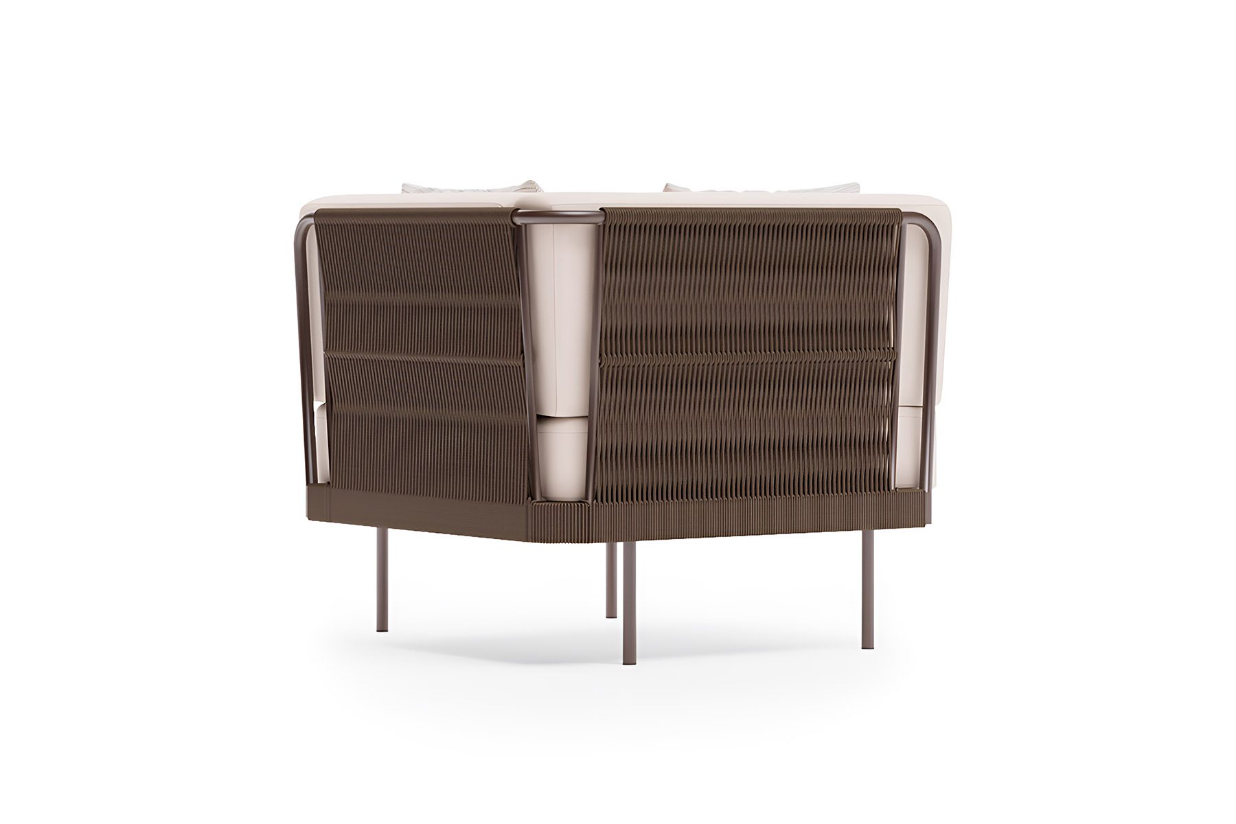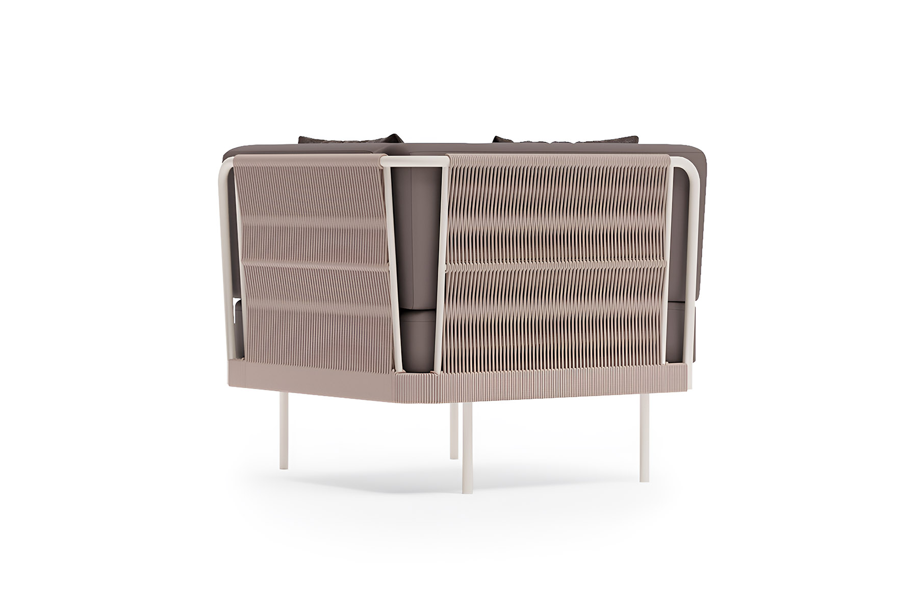 - Каркас белый, ткань коричневая, плетение серо-бежевое.