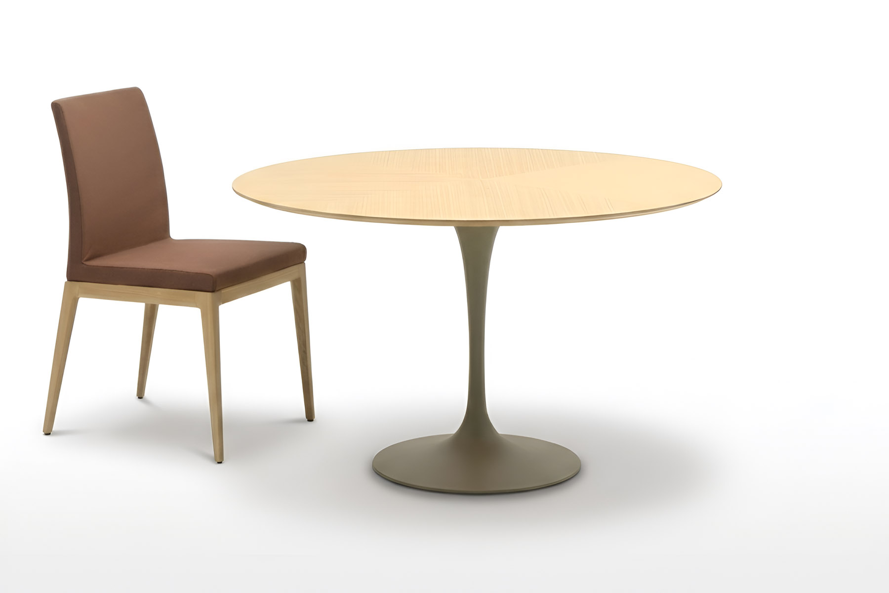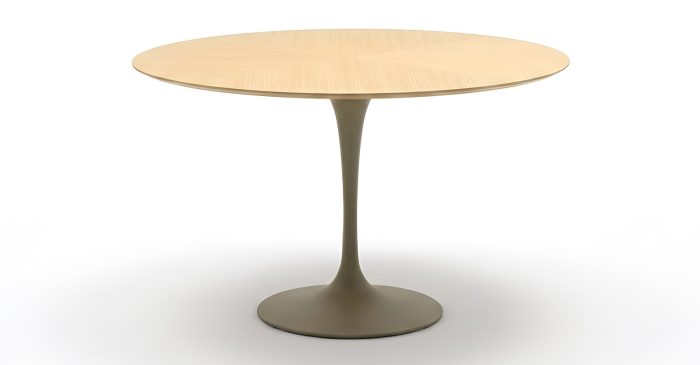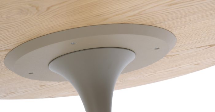 Стол Basel — это изысканная отсылка к эстетике 60-х годов, воплощенная в форме элегантной круглой столешницы на одной центральной опоре. Такой подход обеспечивает устойчивость всей конструкции и освобождает пространство от визуального шума, делая интерьер более удобным и воздушным.