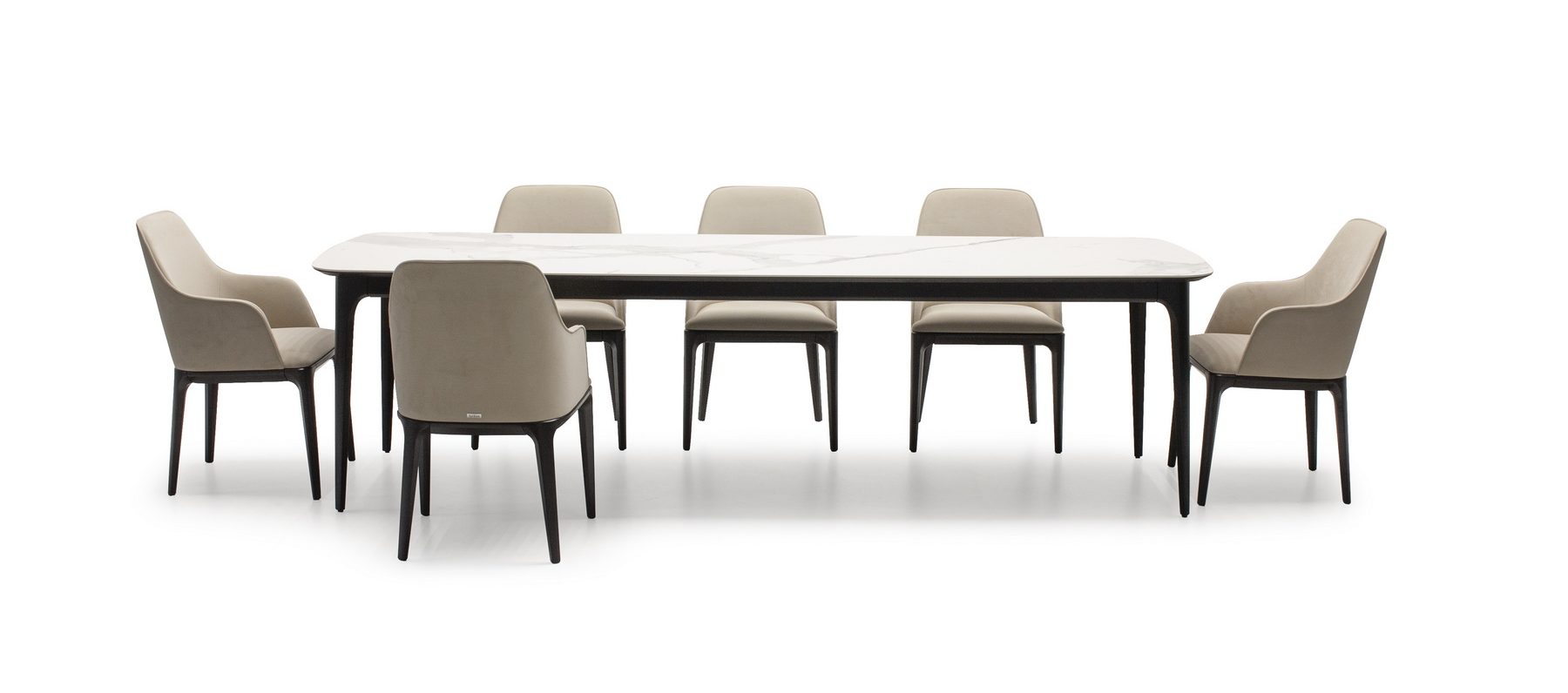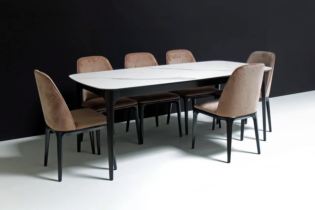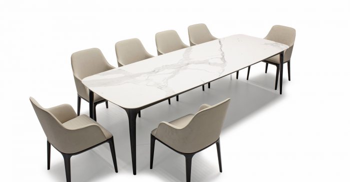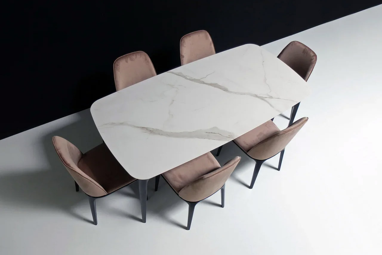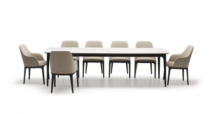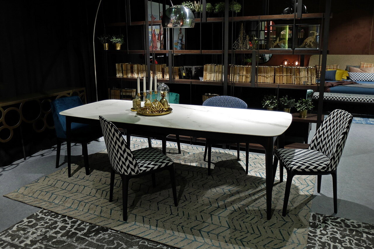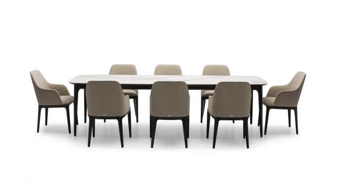 На фото вы можете видеть все вариации. Любой обеденный стол можно изготовить с механизмом трансформации. Все столы этой коллекции отличаются скругленными формам, визуальной компактностью и воздушностью.