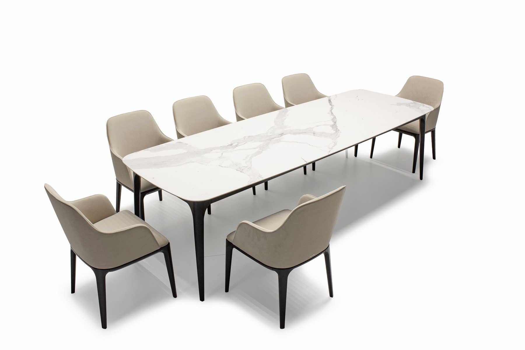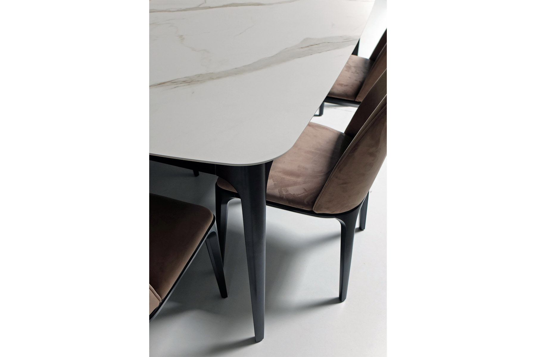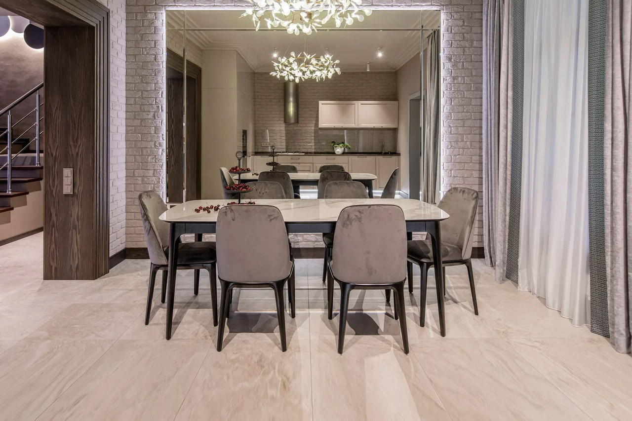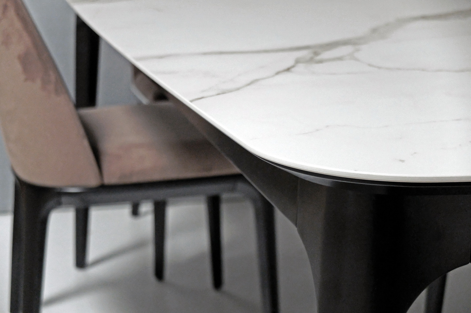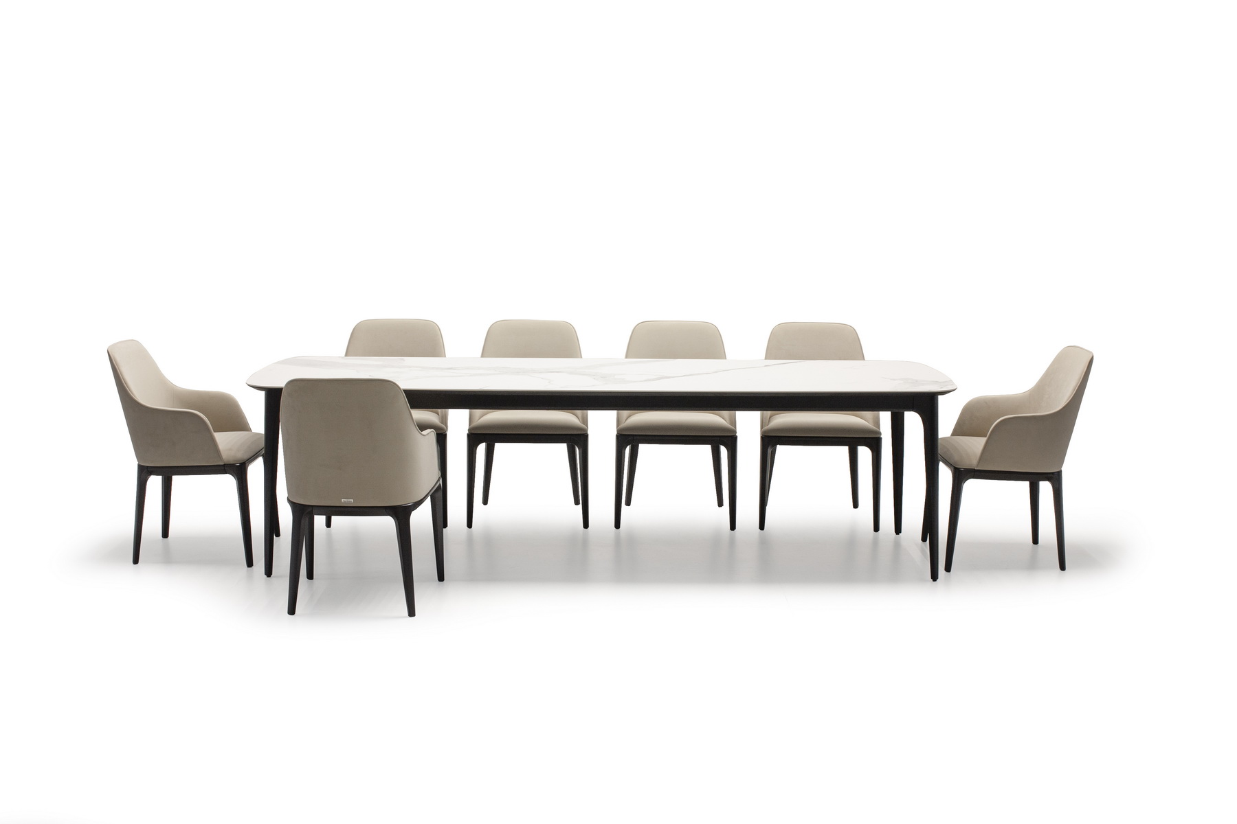 На фото вы можете видеть все вариации. Любой обеденный стол можно изготовить с механизмом трансформации. Все столы этой коллекции отличаются скругленными формам, визуальной компактностью и воздушностью.