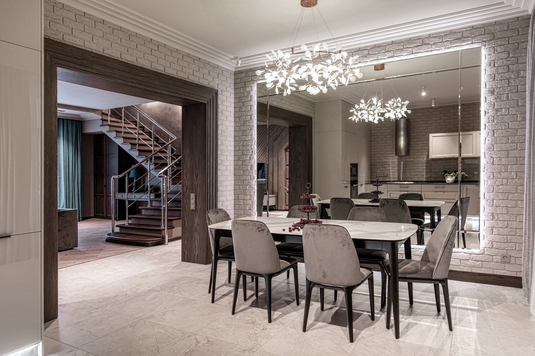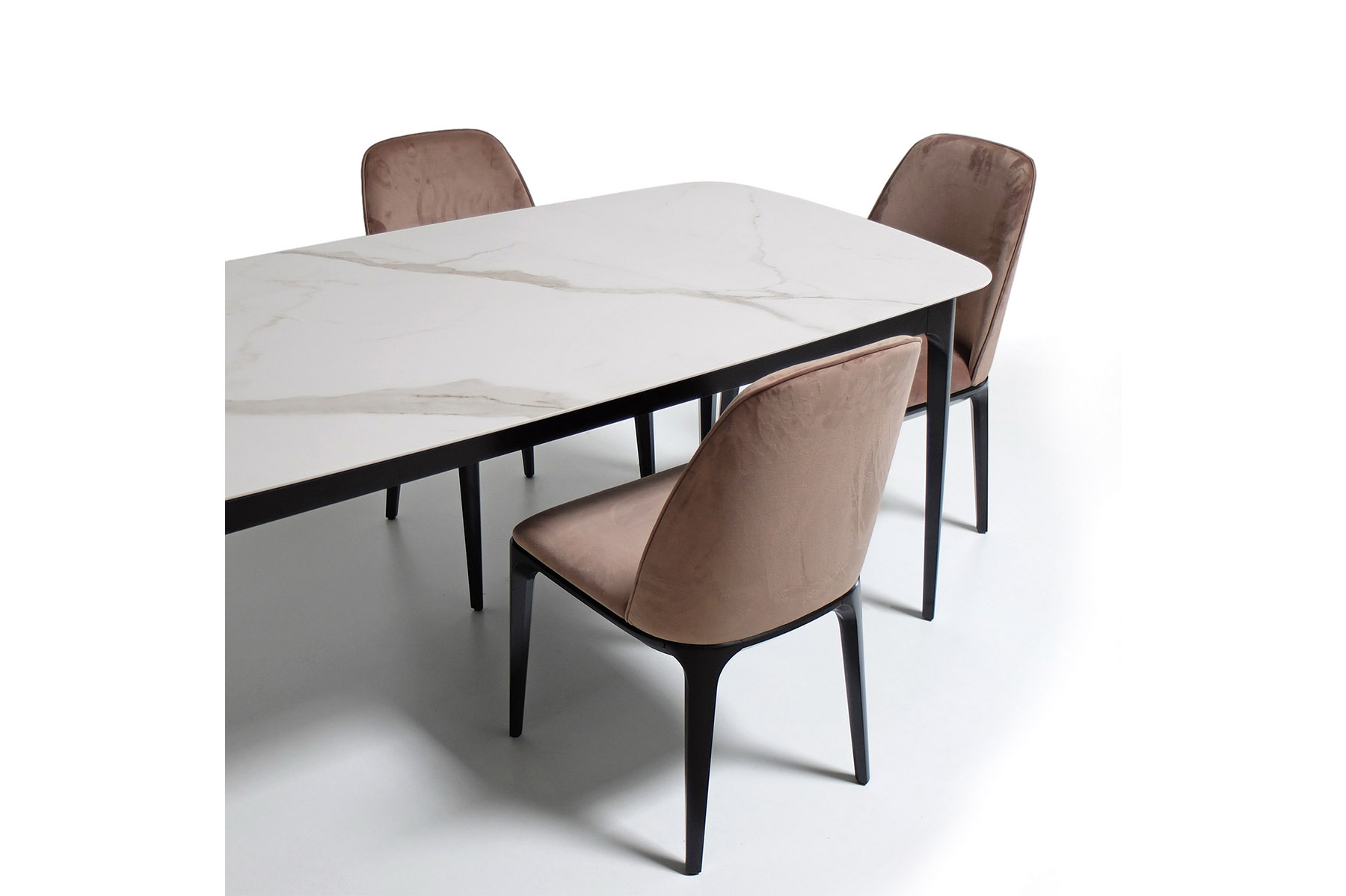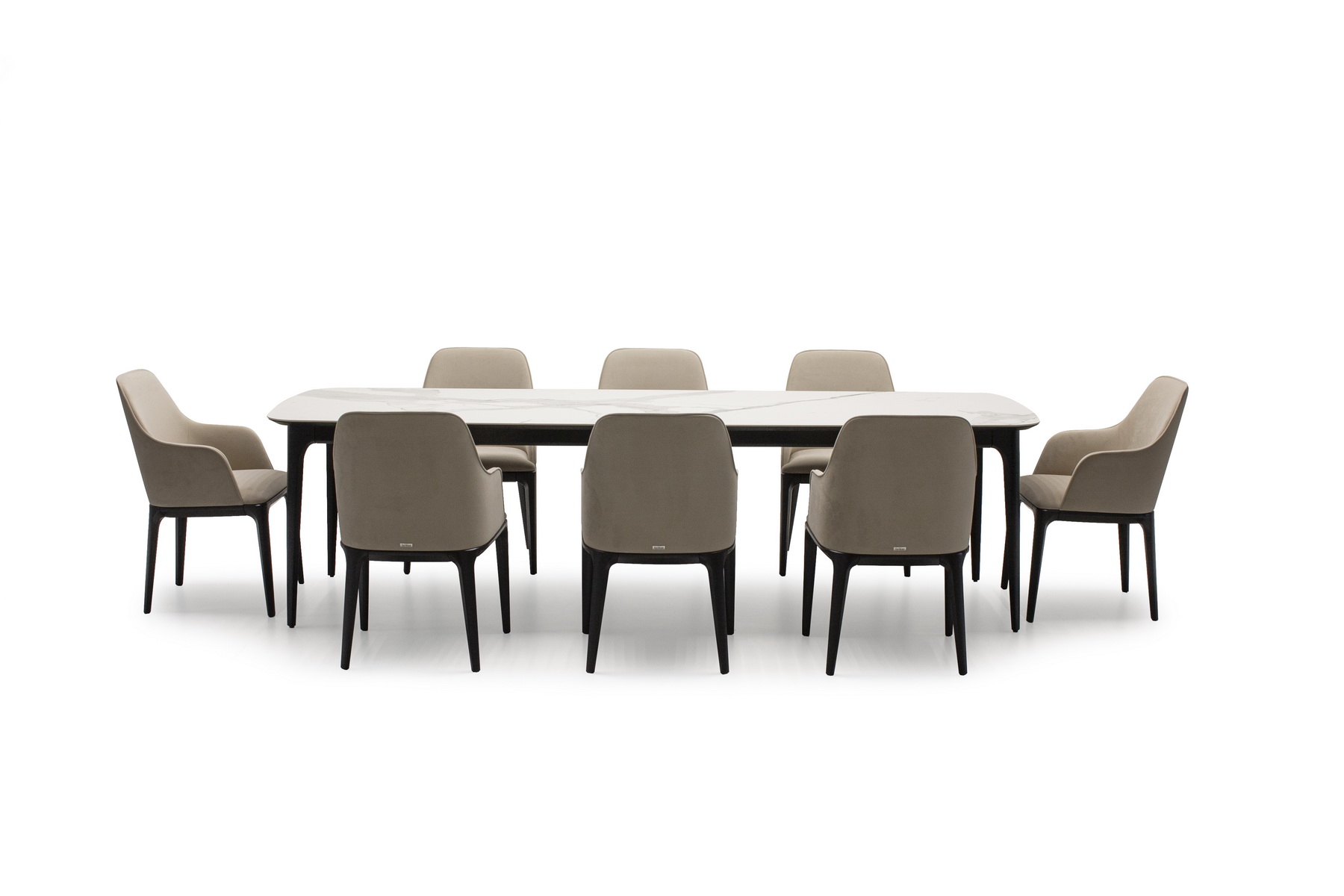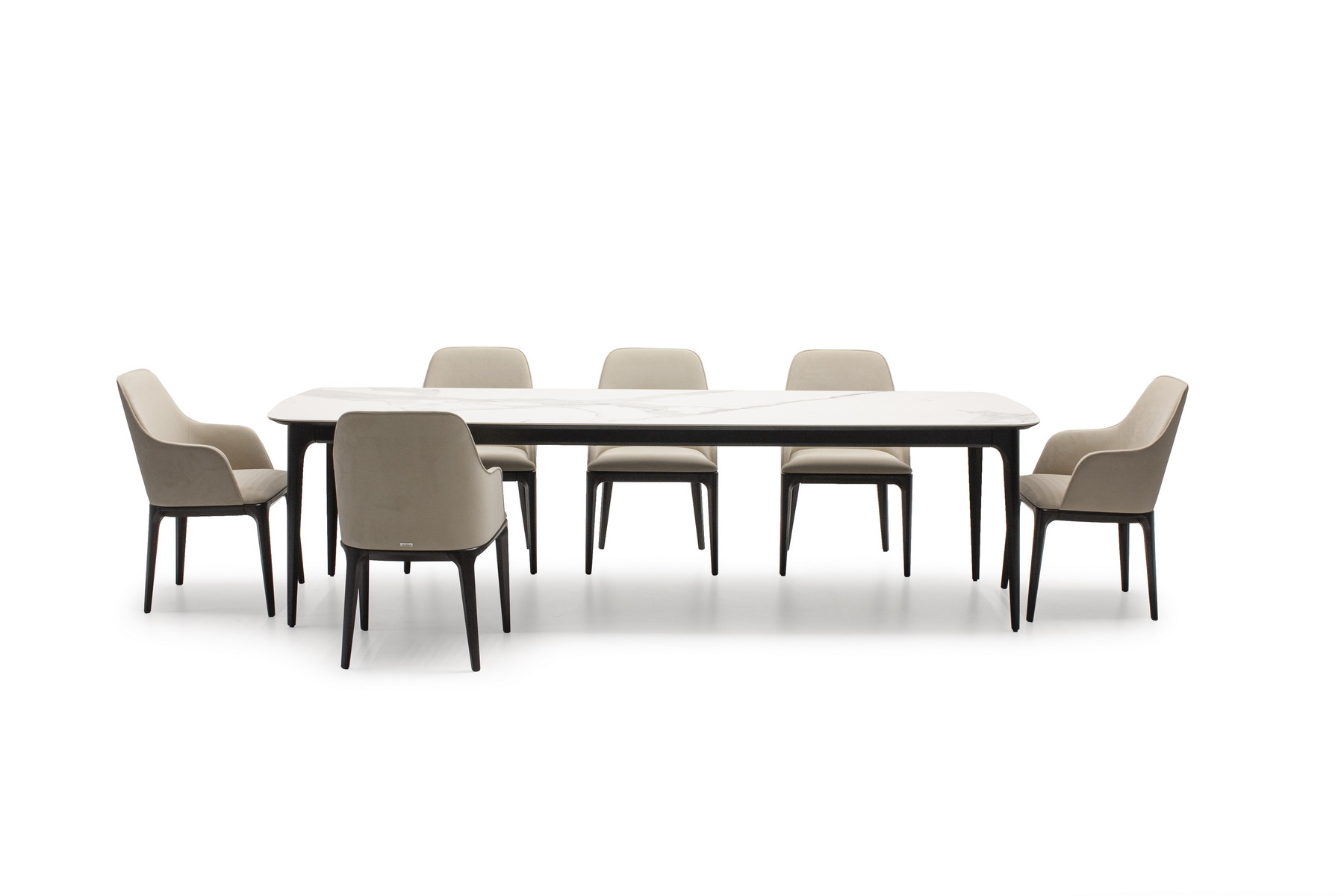 На фото вы можете видеть все вариации. Любой обеденный стол можно изготовить с механизмом трансформации. Все столы этой коллекции отличаются скругленными формам, визуальной компактностью и воздушностью.