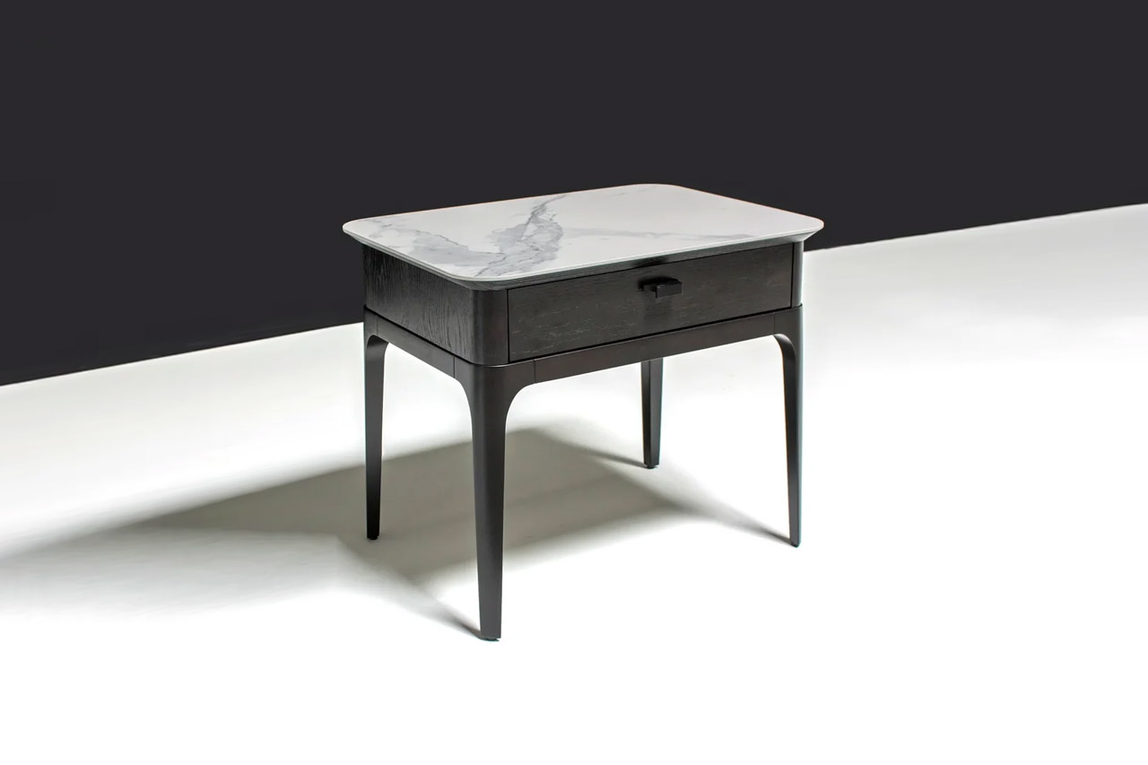 Коллекция Play — это вдохновение последних тенденций мебельного дизайна. Отсутствие прямых углов, лаконичные линии подчеркивают внешнее изящество изделий, а использование при производстве натуральных материалов придает мебели еще большую эксклюзивность и неповторимость. Тумба Play изготовлена из экологически чистых материалов с применением современных технологий. Каркас тумбы изготовлен из МДФ, облицован натуральным шпоном Американского Ореха, а основание — из массива берёзы. Возможно изготовление столешницы тумбы из мрамора, а также каркас изделия может быть облицован шпоном дуба.