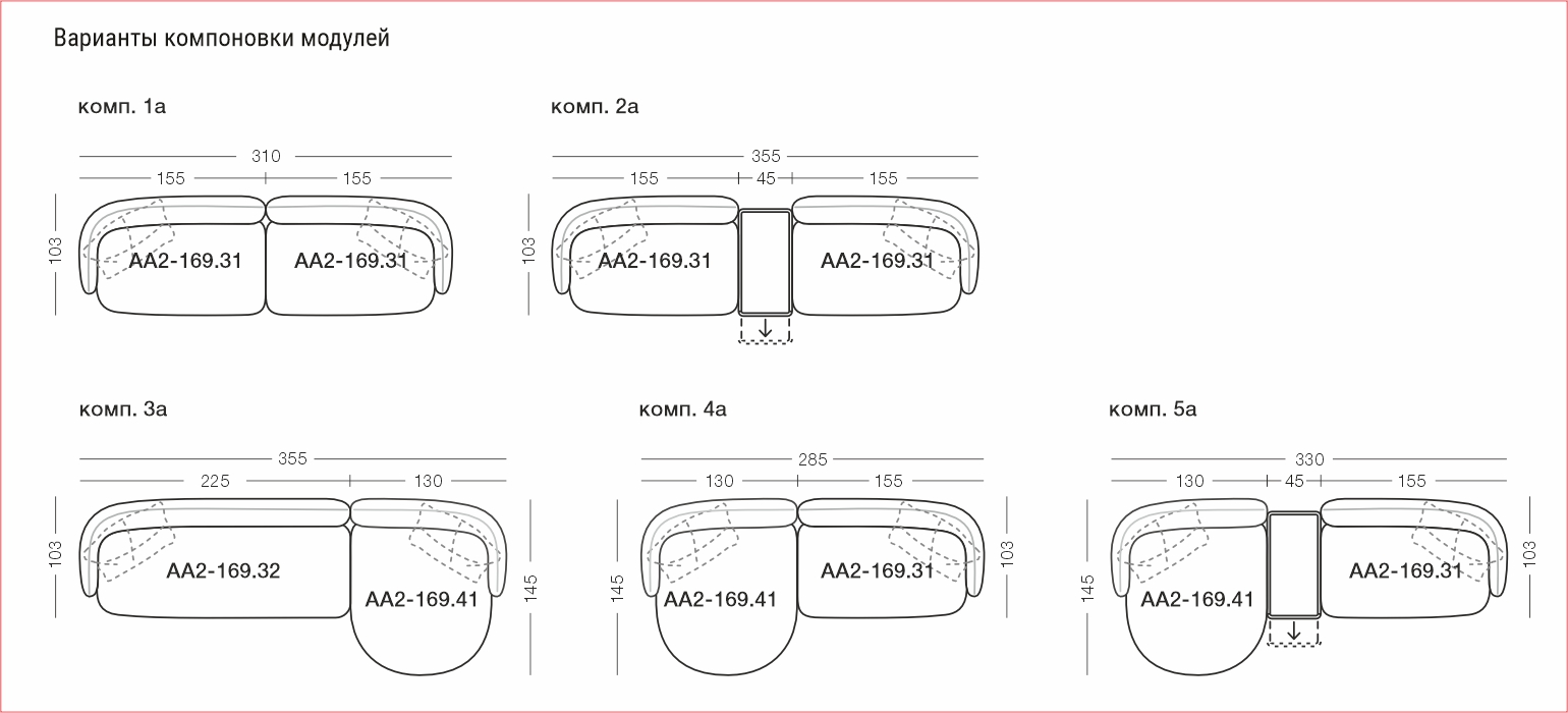 | Возможные варианты: | 285х145х74 см, 355х145х74 см |
