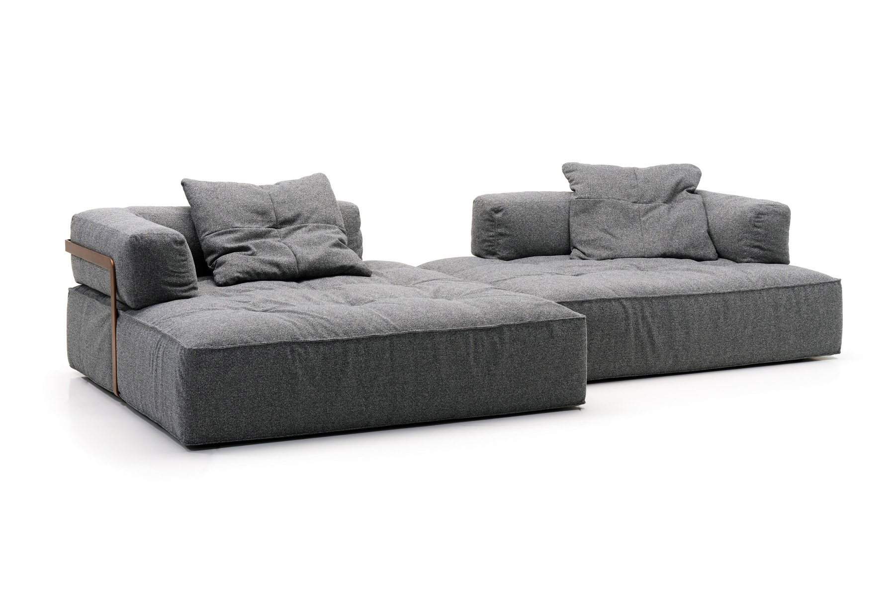 Logan включает мобильные спинки различной формы — прямые и угловые, которые можно использовать отдельно или в сочетании с угловой металлической конструкцией, создавая уникальные композиции. Четкие линии модели перекликаются с архитектурой модернизма, добавляя интерьеру сильный декоративный акцент.