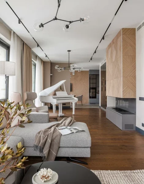 Отличный пример современного и продуманного интерьера, который сочетает эстетику, функциональность и индивидуальность заказчика