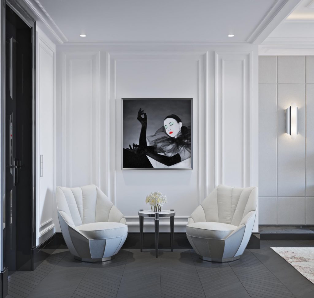 Для 3-х поколений большой семьи. Квартира была объединена из 2-х смежных. Стиль — неоклассика, с элементами арт-деко.
